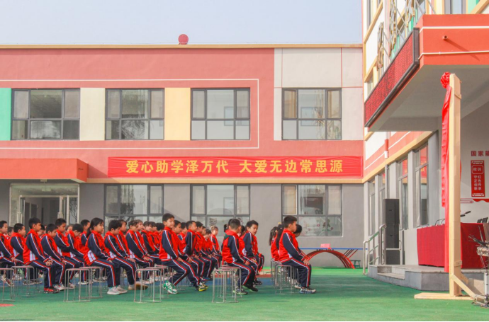 ÉÏÎçÊ®µã£¬£¬£¬£¬£¬Ð¡Ñ§²¿µÄѧÉúÃǶ¼Åå´øºÃÁ˺ìÁì½í£¬£¬£¬£¬£¬ÕûÆëµØ×øÔÚ²Ù³¡ÉϼÓÈë×ðÁú¿Ê±°®ÐÄѧУµÄ½ÒÅÆÒÇʽ¡£¡£¡£Õâ×ùÓÉ×ðÁú¿Ê±È«×ÊÔ®½¨µÄ°®ÐÄÑ§Ð£×¯ÖØµØÒÙÁ¢ÔÚÕâÆ¬¡°ÐÂÖйú´ÓÕâÀï×ßÀ´¡±µÄÍÁµØÉÏ¡£¡£¡£