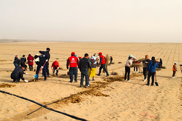 ͼΪ¡°»¤ÂÌÏÈ·æ¶Ó¡±Í¦½øÉ³Ä®Ö²Ê÷ÏÖ³¡