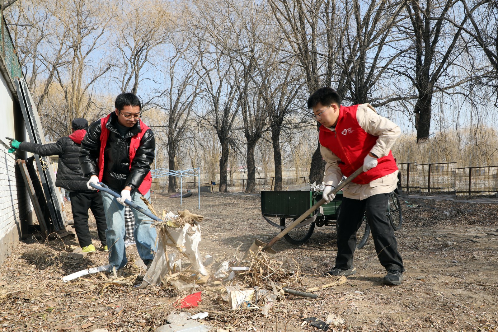 与此同时,,,,,前院的荒地上演着另一场“破冰”。。。。。小伙子们挥舞铁锹斩断枯藤,,,,,挖开甜睡了一冬的土壤,,,,,蒸腾起湿润的雾气。。。。。自愿者原辉摘下沾满土壤草棍的手套,,,,,抹了一把额头上淌下来的汗:“咱们把这里整理出来,,,,,中心种成草坪,,,,,再往周围撒上太阳花的种子,,,,,以后把这里酿成孩子们的户外疗愈花园,,,,,好欠好??????”他弯下腰继续整理地上群集的荒草和杂物,,,,,与死后正在忙碌的同伴们,,,,,在早春的阳光下叠成了一副充满生气和活力的剪影。。。。。