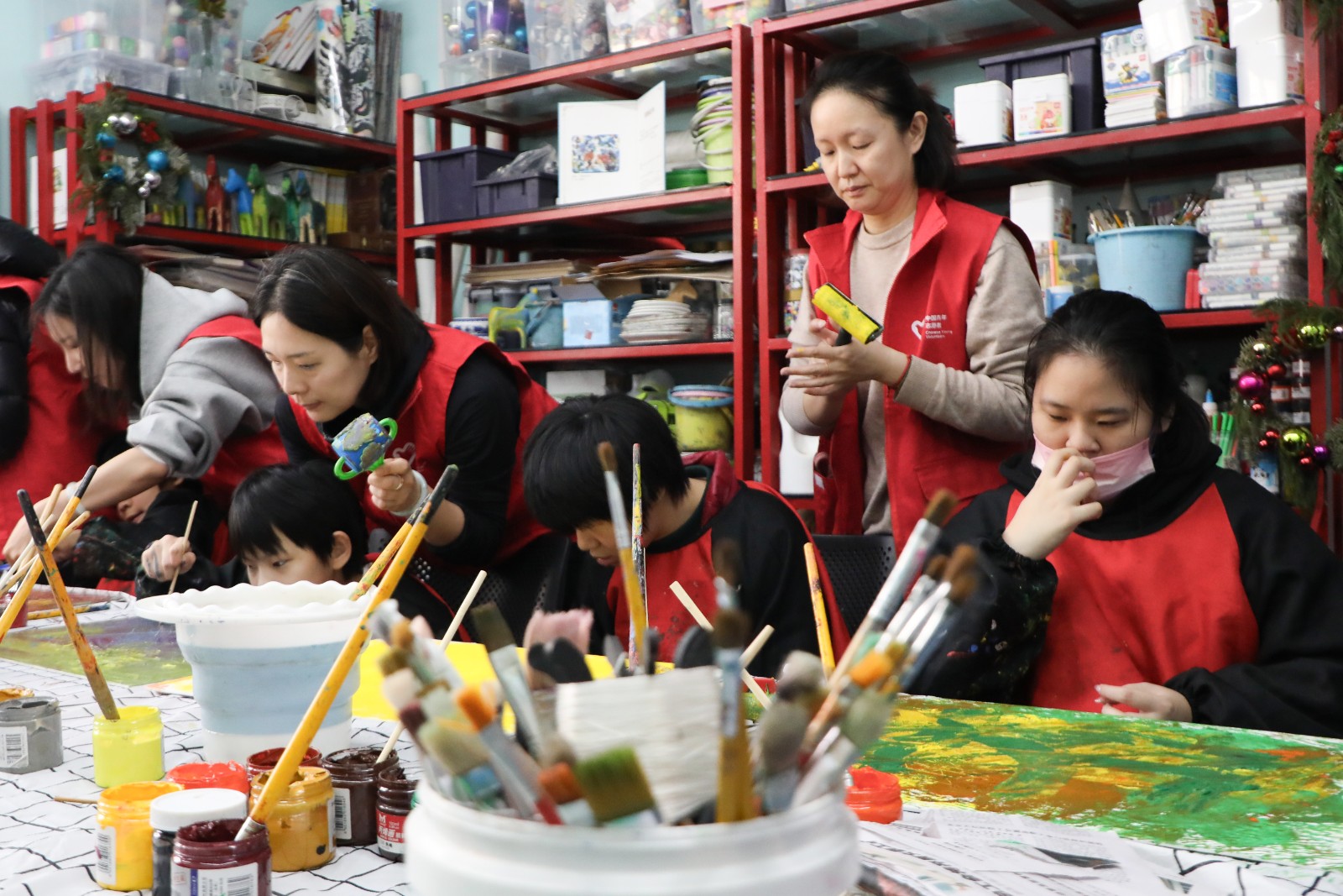 清早的阳光斜穿过北京晨光脑瘫康复效劳中心二楼的玻璃窗,,,,,在画室的白墙上织出细碎的金网。。。。。孩子们早早守在画室门口,,,,,用满含期待的眼光望向楼梯口。。。。。当身穿红马甲的国电电力自愿者步队泛起时,,,,,他们的眼里绽放出笑意。。。。。