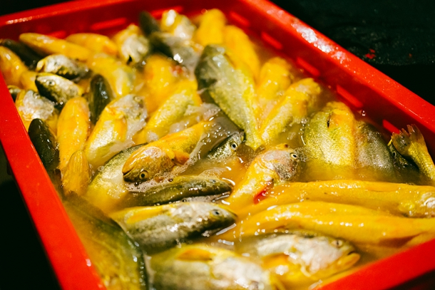 此次收获的试验鱼种为4龄岱衢族大黄鱼,,,,,,于2024年4月投放到“国能共享号”平台养殖网箱,,,,,,接纳开放式近生态模式举行深海养殖。。。。。经由半年多的养殖,,,,,,大黄鱼泛起“野化”征象,,,,,,其头部呈钝尖形,,,,,,背鳍舒展,,,,,,体色金黄,,,,,,尾柄修长,,,,,,预计总产量达4500千克。。。。。冬季是福建的盛风季节,,,,,,该公司紧盯小风天窗口期,,,,,,接纳“碎片化”作业方法举行捕捞,,,,,,捕捞完成后举行速冻和包装,,,,,,最洪流平包管大黄鱼的鲜美,,,,,,并通过冷链运运送达消耗者的餐桌。。。。。