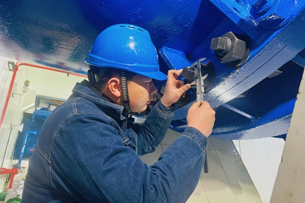 ͼΪĥÁ·Ö°Ô±ÕýÔÚ¶ÔÅþÁ¬ÂÝ˨¾ÙÐÐÕÉÁ¿